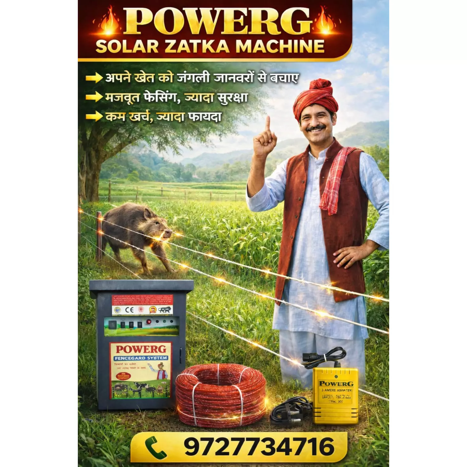 DESIGNED AS PER BIS STANDERDS GIVEN BY GOVT OF INDIASOLAR CHARGING AVAILABLE,RAIN PROOF MACHINE,50 ACRE,BEST BATTERY BACKUP,DAY NIGHT MODE AVAILABLE, FANCE FAULT SIREN AVAILABLE,HEAVY ABS FIBER CABINET,BEST PACKING WITH THERMOCOL COATING Continue