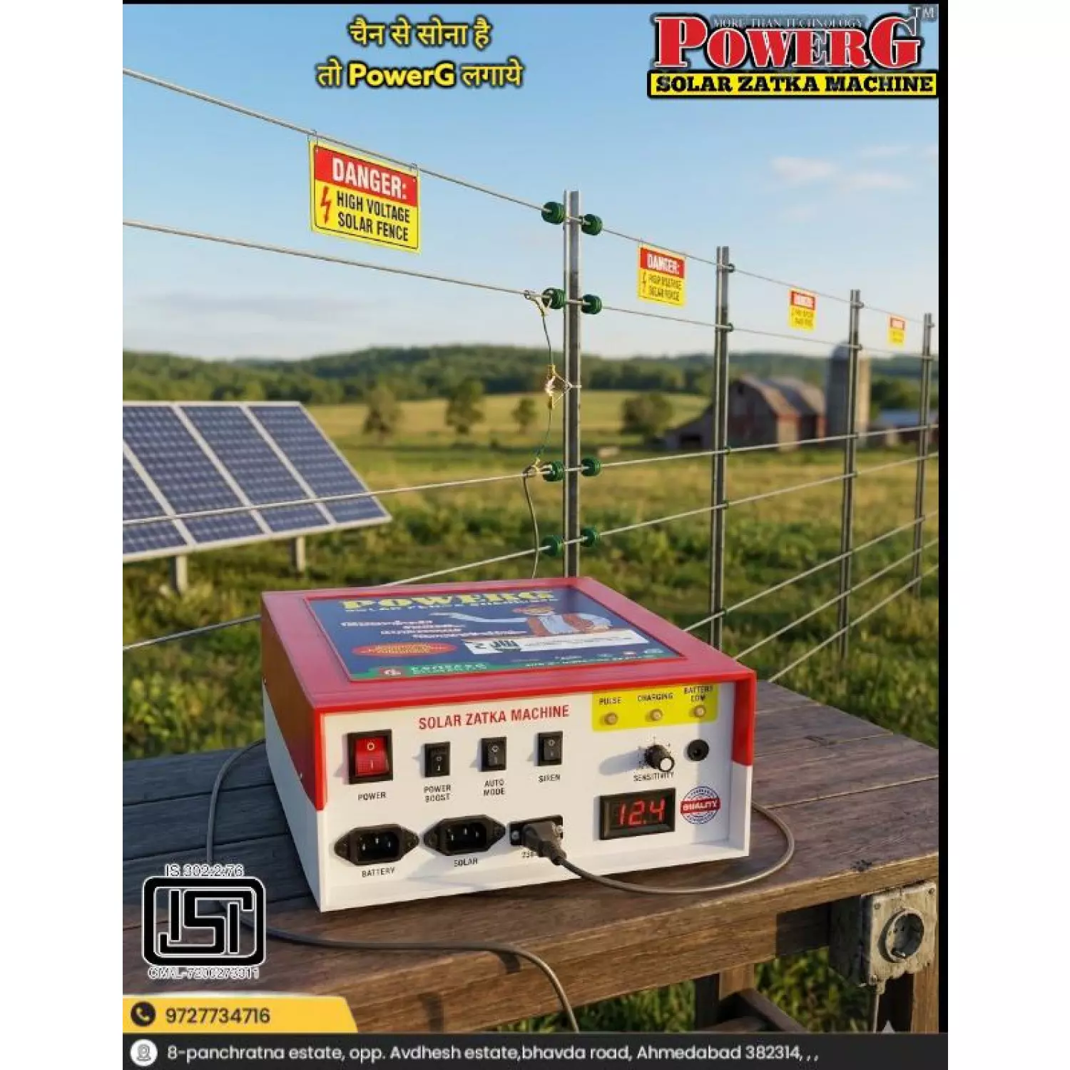 1. Designed As Per BIS Standards Given By Govt. Of India2. Solar Charging Available.3. 60 Acre Area Coverage.4. 12 Ah Battery Inside5. Reverse Battery Protection Available.6. Best Quality With 10000 V Power.7. Day Night Mode Available.8. Fence Fault Siren Available.9. Heavy MS Cabinet.10. Best Packing With Thermo Coal Coating.... Read more