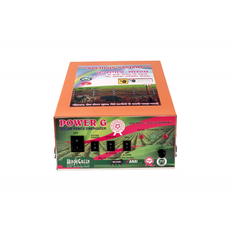 1. Designed As Per BIS Standards Given By Govt. Of India2. Solar Charging Available.3. 60 Acre Area Coverage.4. 12 Ah Battery Inside5. Reverse Battery Protection Available.6. Best Quality With 10000 V Power.7. Day Night Mode Available.8. Fence Fault Siren Available.9. Heavy MS Cabinet.10. Best Packing With Thermo Coal Coating.... Read more