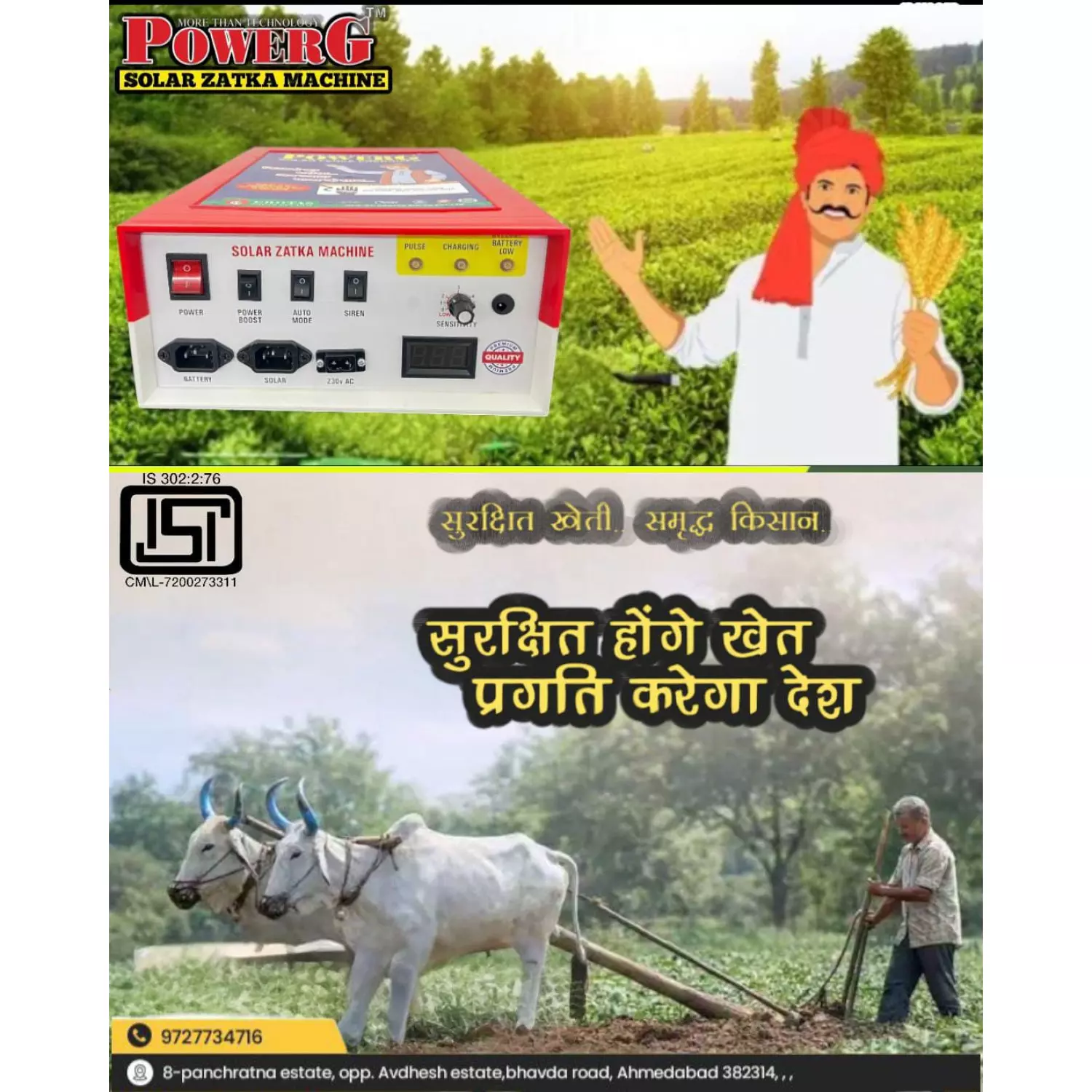 1. Designed As Per BIS Standards Given By Govt. Of India2. Solar Charging Available.3. 60 Acre Area Coverage.4. 12 Ah Battery Inside5. Reverse Battery Protection Available.6. Best Quality With 10000 V Power.7. Day Night Mode Available.8. Fence Fault Siren Available.9. Heavy MS Cabinet.10. Best Packing With Thermo Coal Coating.... Read more