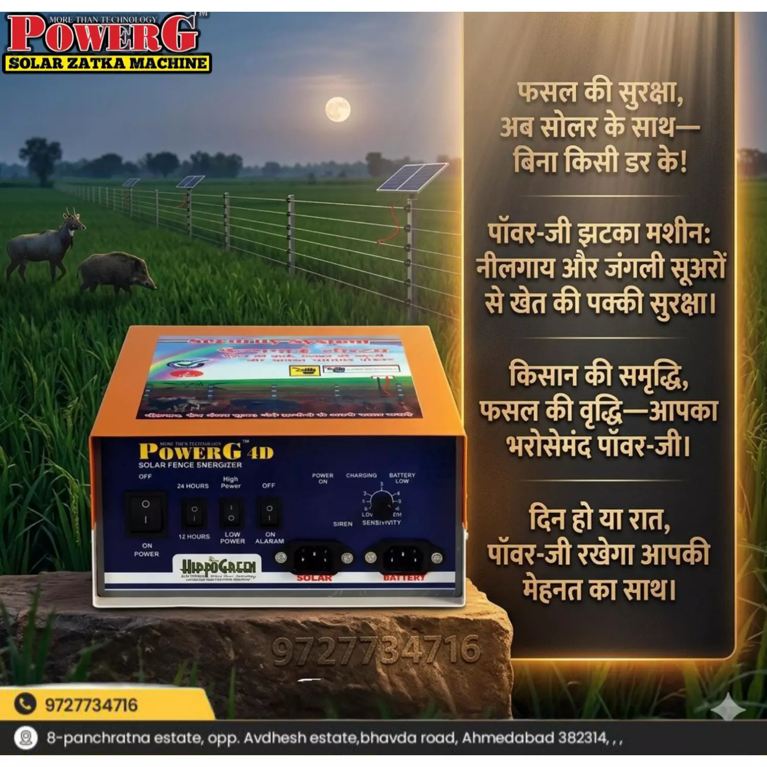 1. Designed As Per BIS Standards Given By Govt. Of India2. Solar Charging Available.3. 60 Acre Area Coverage.4. 12 Ah Battery Inside5. Reverse Battery Protection Available.6. Best Quality With 10000 V Power.7. Day Night Mode Available.8. Fence Fault Siren Available.9. Heavy MS Cabinet.10. Best Packing With Thermo Coal Coating.... Read more
