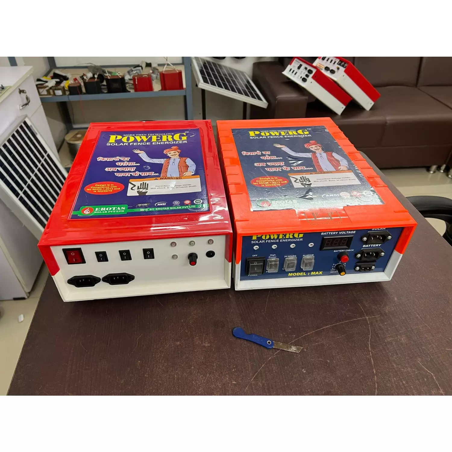 A solar jhatka machine is a solar-powered electric fence energizer that delivers a mild, safe, and effective electric shock to animals and intruders,