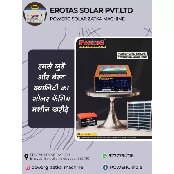 A solar jhatka machine is a solar-powered electric fence energizer that delivers a mild, safe, and effective electric shock to animals and intruders,